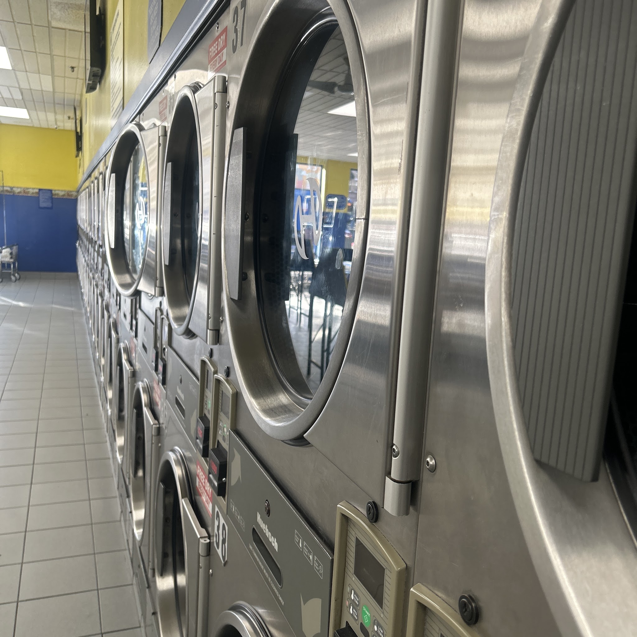 Super clean, dry & soap are free. About 200 machines. Dining area. Staff was very nice, gracias Jenny!