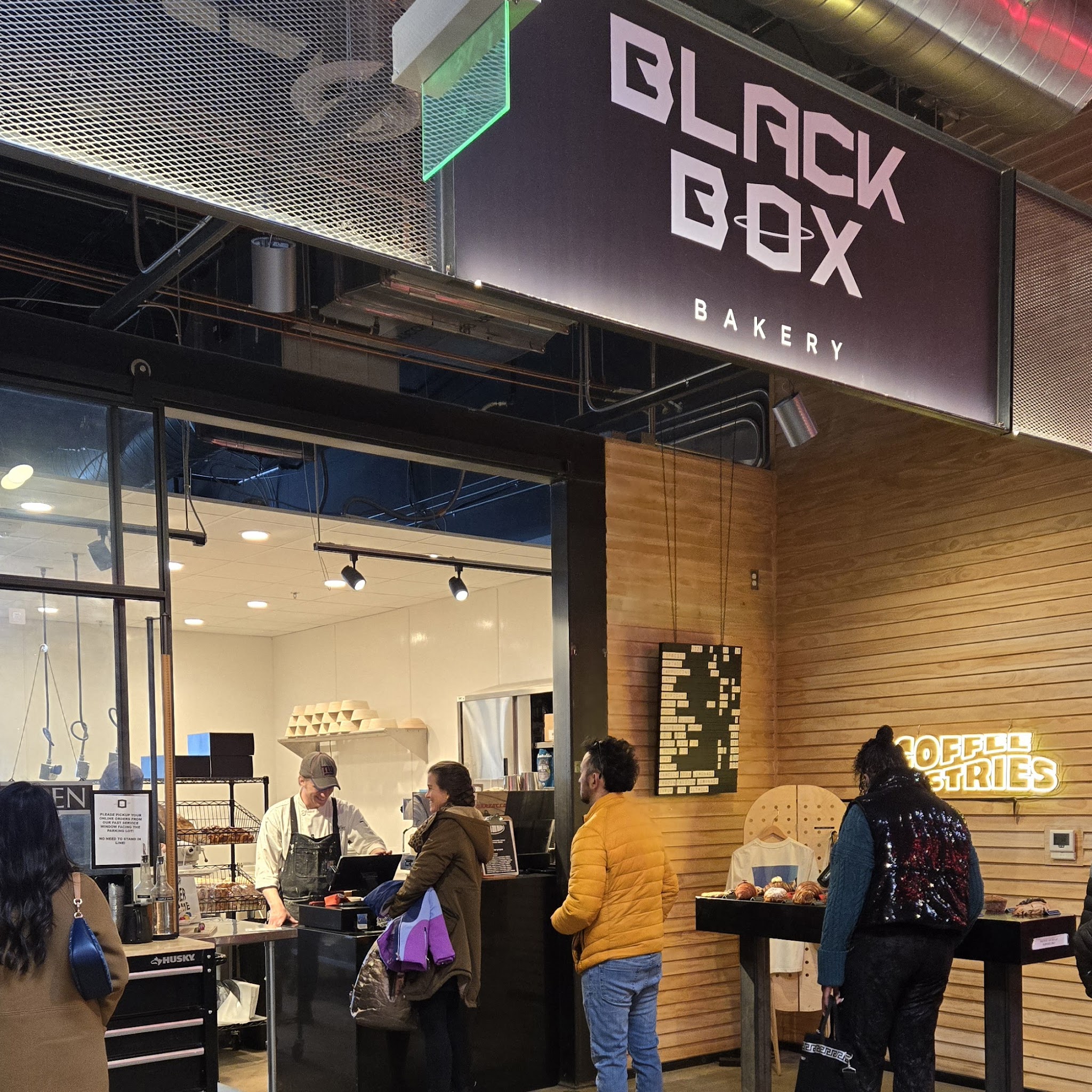 I have wanted to visit Black Box for a really long time. My wife and I finally got the opportunity to visit this morning and we will definitely be coming back. We ordered a Blackberry Yuzu Mini Croissant Cube, a Thai Tea/Boba Cruffin, a Mothership latte, and a Cappuccino with Caramel syrup. Just as imagined, the pastries practically exploded as only the best laminated doughs do upon the first bite. The creams in both pastries were divine and leaving us craving every item on their menu. Only drawback is their location inside the Edgewater Public Market. While it is unstable for the sustainability of the buisness cost wise, markets like the Edgewater Public Market do little for the atmosphere of individual businesses and leaves me feeling like the experience is always incomplete. Regardless of their lack of an individual building to call their own, they make up for it with merch, and quality that will have us coming back again and again!Food: 5/5 | Service: 5/5 | Atmosphere: 3/5Noise lev