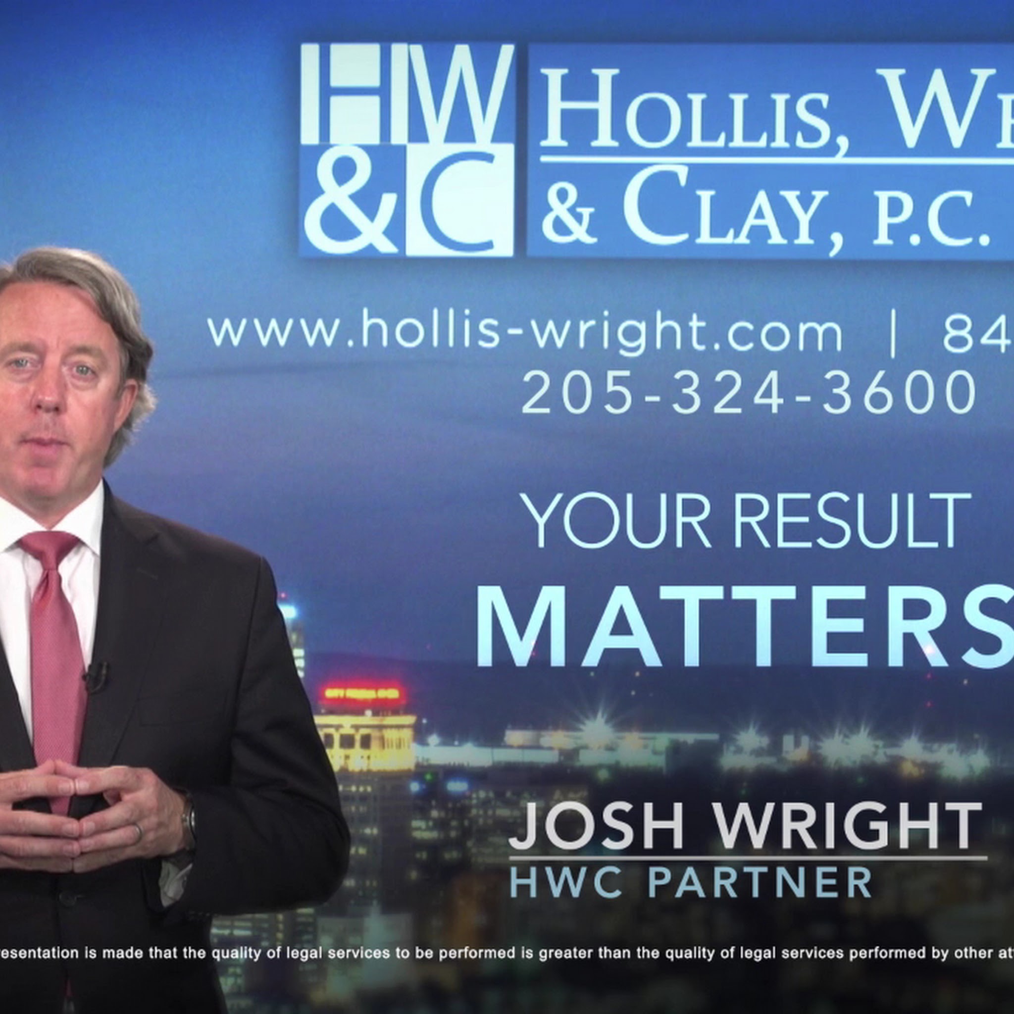 Hollis Wright is a full-service personal injury law firm located in Birmingham, Alabama, on historic Morris Avenue. We handle cases that involve serious personal injury, including car and truck accidents; workplace, industrial and premises accidents; medical malpractice; workers' compensation; and defective products—pharmaceutical/drugs, medical devices, consumer and household products, commercial products and automotive parts. We have been defending the rights of...