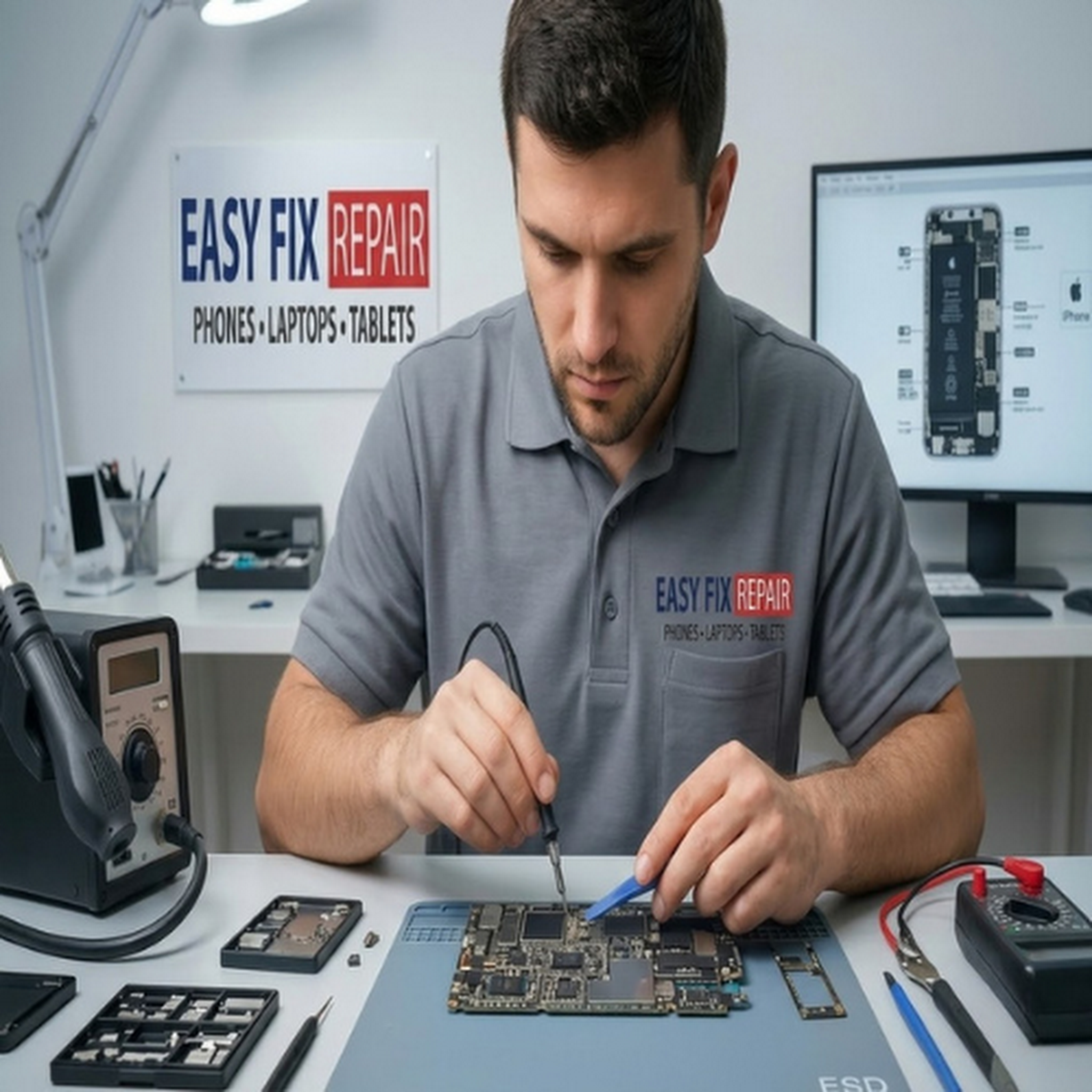 Easy Fix Repair in Simi Valley, CA provides fast and reliable iPhone repair services for all models, Samsung phone, iPad, Tablet, MacBook, laptop, iMac, Apple Watch, gaming console and computer repair. Our expert team provides same-day screen replacements, battery service, charging port repair, c...
