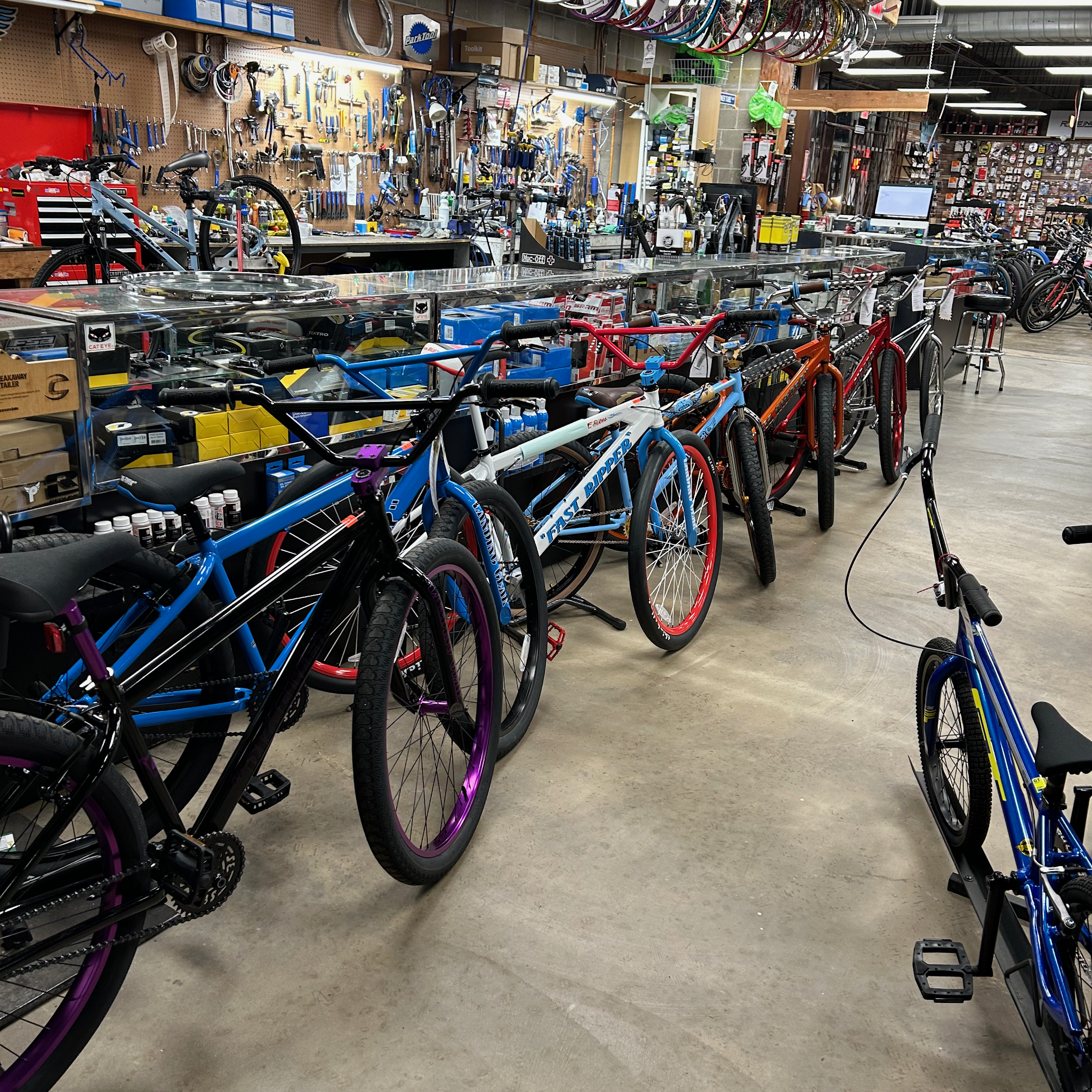 Visited this store for the first time today. Very nice atmosphere with lots of bikes to choose from. I liked that no one was trying to pressure me to buy anything. After looking around a bit I was able to bring in my bike and have it serviced within 5 minutes I was back on the road.