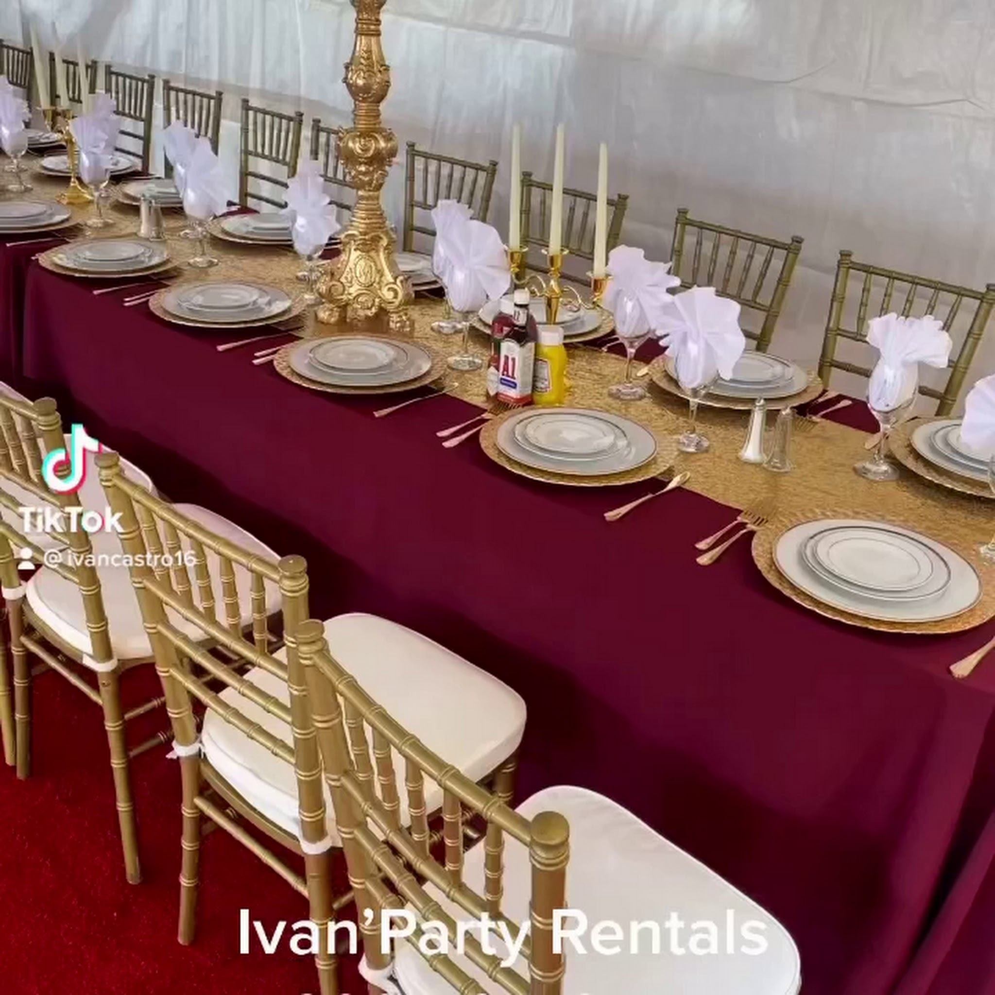 We have everything for your events. No matter if it is big or small we can help you. Call us at 323)424-6754 We have a variety of chairs, tables, tents in all sizes, tablecloths, popcorn machines, cotton machines, shaving machines, jumpers, mechanical bulls, lights, bathrooms, water jumpers and much more.