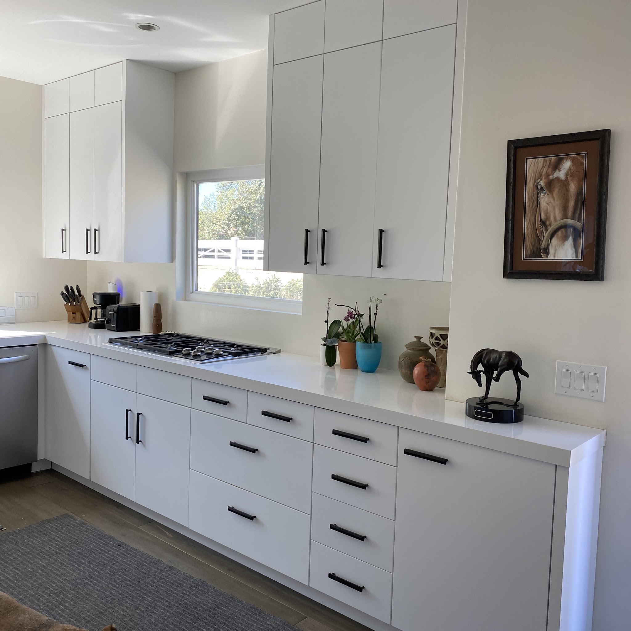 Cabinet Refresh did most of our kitchen remodel, including painting the cabinets white, replacing hinges and pulls, modifying part of the cabinet space to fit a new oven/microwave combo, taking down the bar top to make the counter all one level, and installing a new sink. We also asked them to install a butcher block countertop. As you can see from the before and after photos, they did a beautiful job. The cabinet boxes and doors look brand new. The modified space fit the new oven perfectly. Working with Maury and Elio was a pleasure. Both were very friendly, helpful and responsive. I am only giving 4 stars instead of 5 bc of issues w the butcher block. They were kind enough to find several pieces to fit the space (we had to use 2 pieces per counter due to the length), however Cabinet Refresh didn’t seem to have much experience working with butcher block. They initially stained it with an oil, which showed water stains immediately. We asked them to come back and apply a semi gloss wate