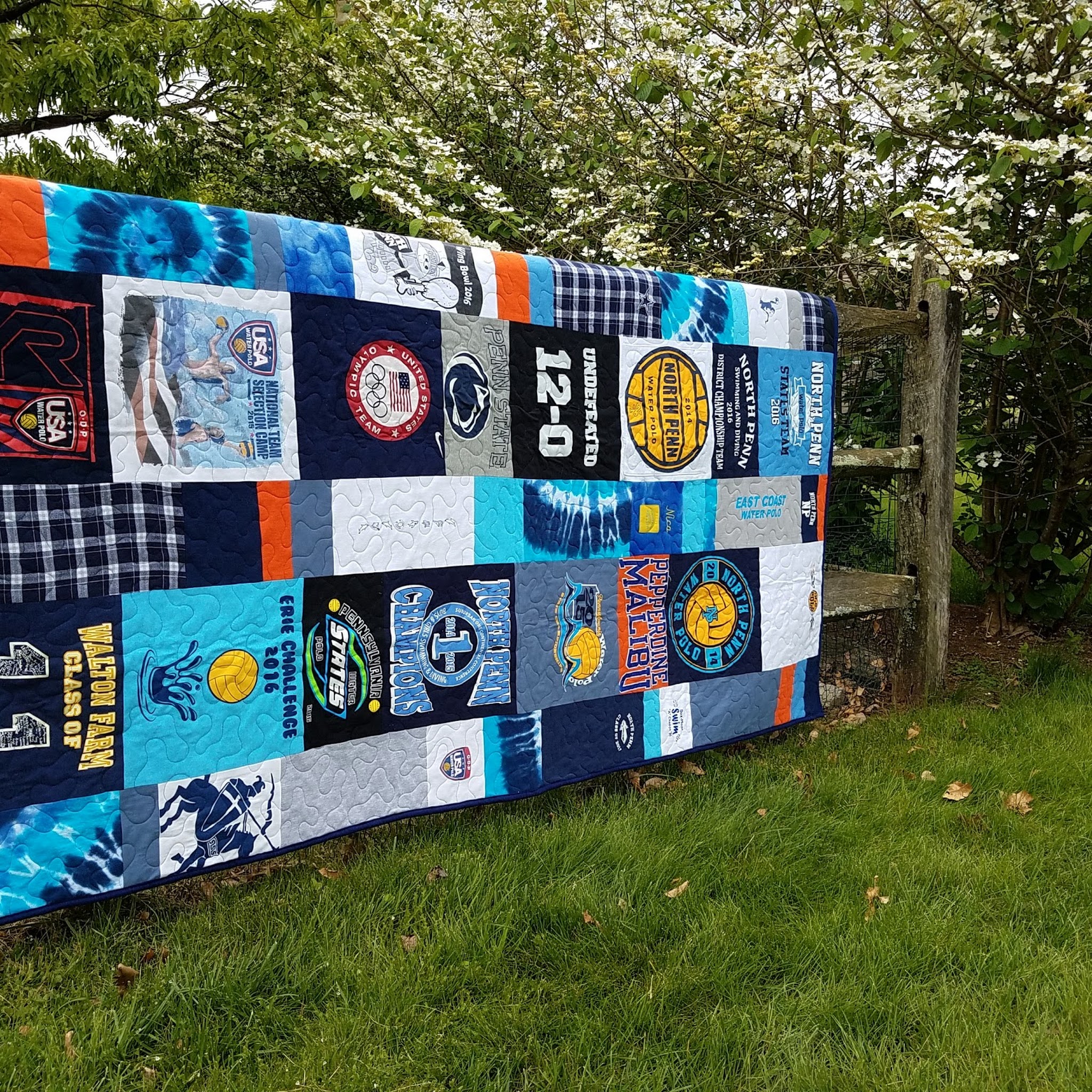 Wrap Yourself in Your Memories Authentic, handcrafted, high quality, custom t-shirt quilts and pillows made with your t-shirts or other memorable fabric! Choice of six different styles and backed with super soft flannel or 100% cotton. Don't just throw those special t-shirts away, have a family heirloom created that will be treasured for years to come.