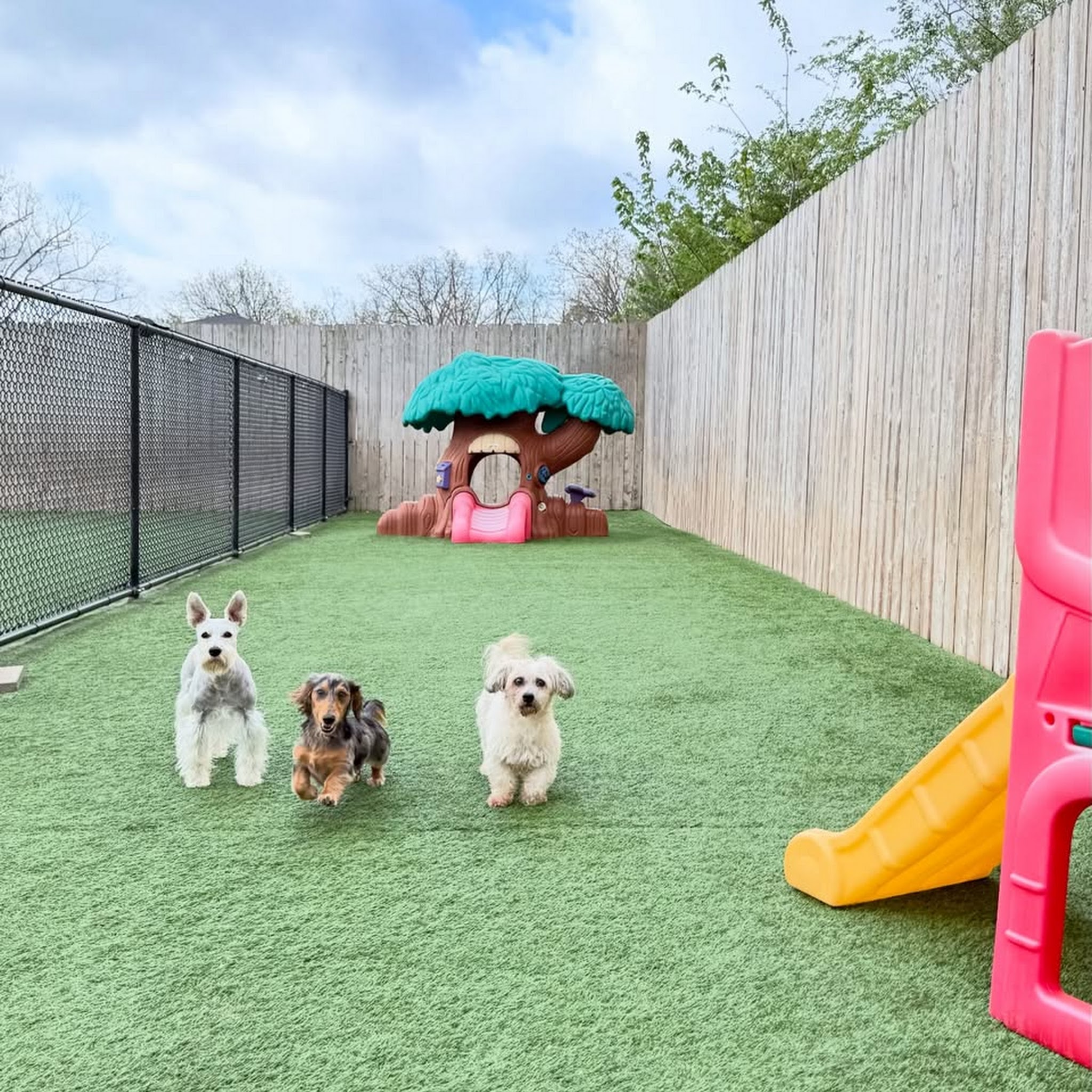 Great Staff, smiles, easy to ask questions of, efficient. In/out at drop off/pickup. Our babies Bandit and Jett were so happy and slept all night. They must have had a great time. … More