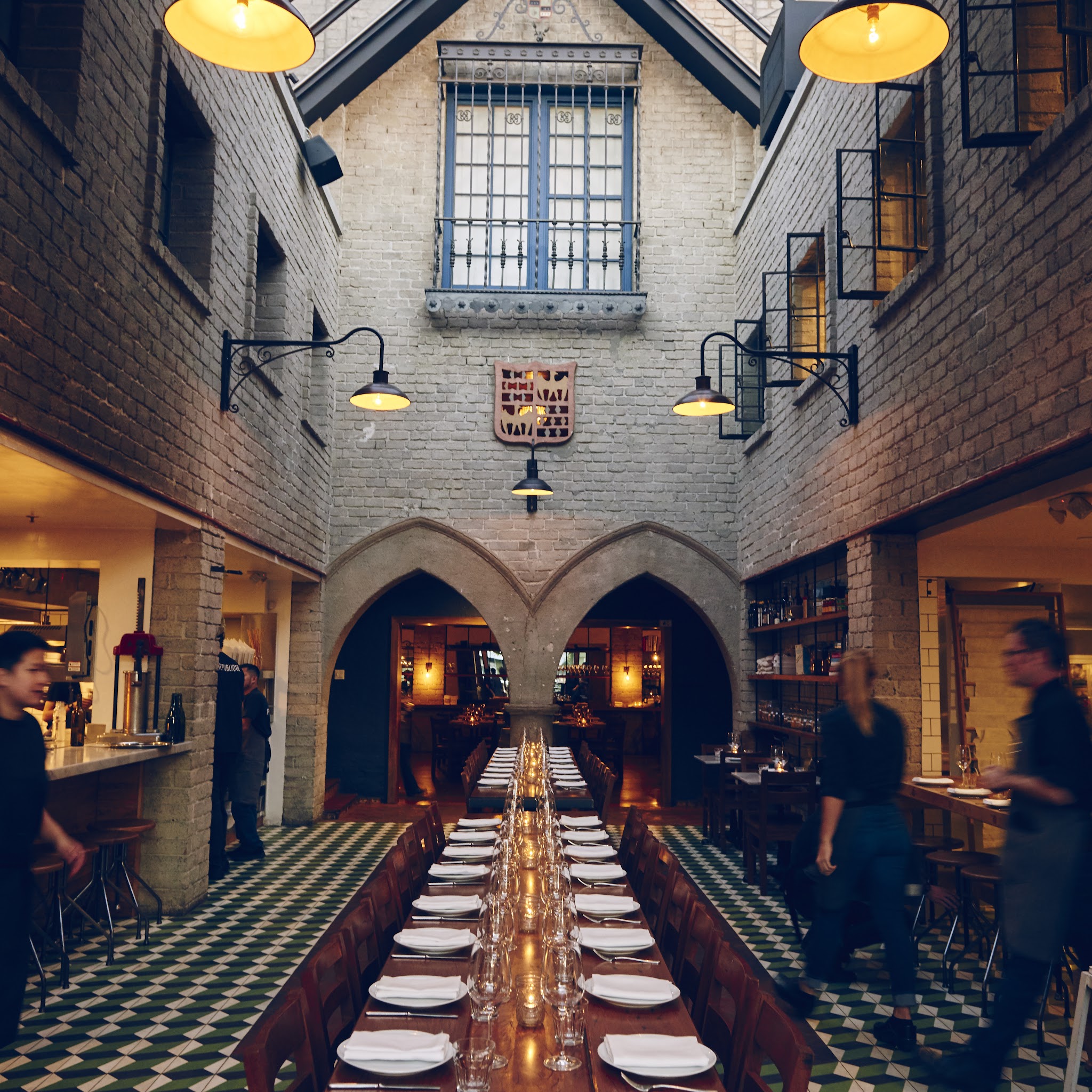 République, located in Miracle Mile, is owned by Chefs Walter and Margarita Manzke. Centered in the heart of Los Angeles, the historic building in which it resides was originally erected in 1929 by Charlie Chaplin, and later transformed into the iconic La Brea Bakery and Campanile Restaurant. République builds on this storied past, offering a gastronomic environment imbued with history and grandeur. The space features a casual bakery, café, and bar in the front with a more formal dining area located in the rear, serving a French-inspired menu created daily by our chefs.