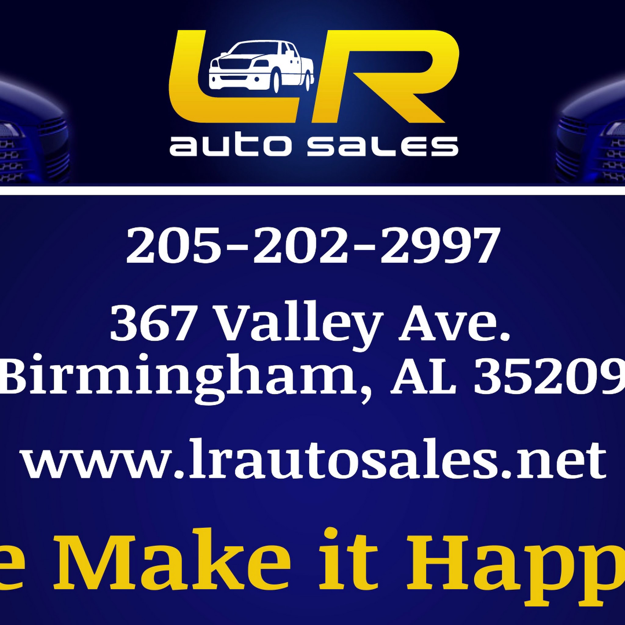 LR Auto Sales, Birmingham Buy Here Pay Here car lot dealer in Birmingham on Valley Avenue. EASY FINANCING AVAILABLE with Payment Options. CarFax certified vehicles for sale, with warranty. LR Auto Sales-We Make It Happen. Buy Here Pay Here! We Finance! Helping Bad, Good, and No Credit customers purchase Used Cars, Trucks, SUV's. Low down payments available. Chevy, Ford, Honda,...
