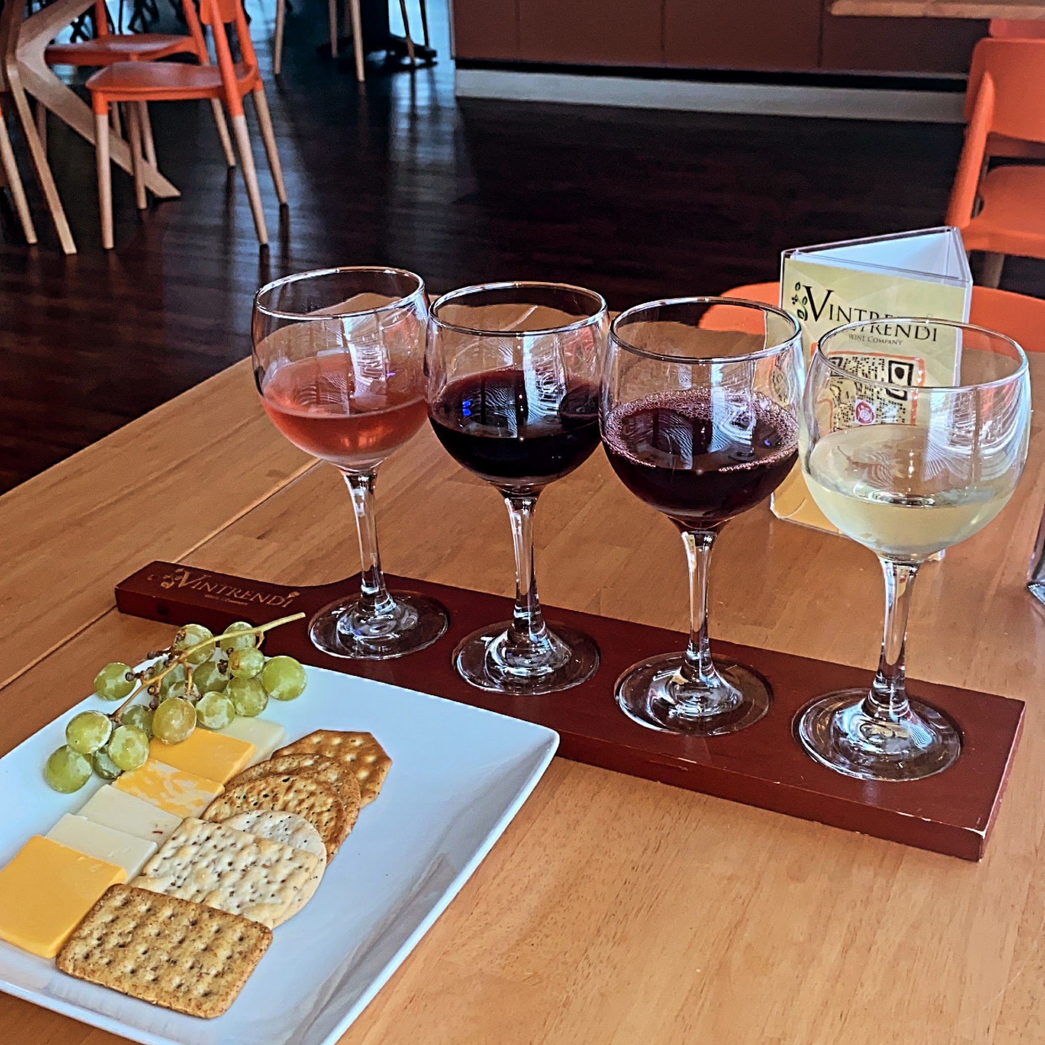 Great experience. After a long drive, my party was informed that dine in sericd ended it was about 30-45 mins before close. We visited for individual tastings. It was disappointing but Donovan, server, offered us samples. During sampling, Donovan displayed exemplary customer service. He explained tasting offerings, he suggested wines based upon our preferences, and gave great details about a various wines. I purchased several of tge wine I sampled. Donovan invited us back to try during a the weekend. We returned and completed individual tastings, (4) 3oz pours including a cheese and cracker assortment, and grapes each. This was a great experience. There was live music with a DJ. Ambient lighting, great vibes, in a grown nd sexy setting. It's great to know theres a Black-Owned and Operated Winery in the State of Illinois. Not to mention Vintrendi being the first. Congratulations to the brand and I will be back.