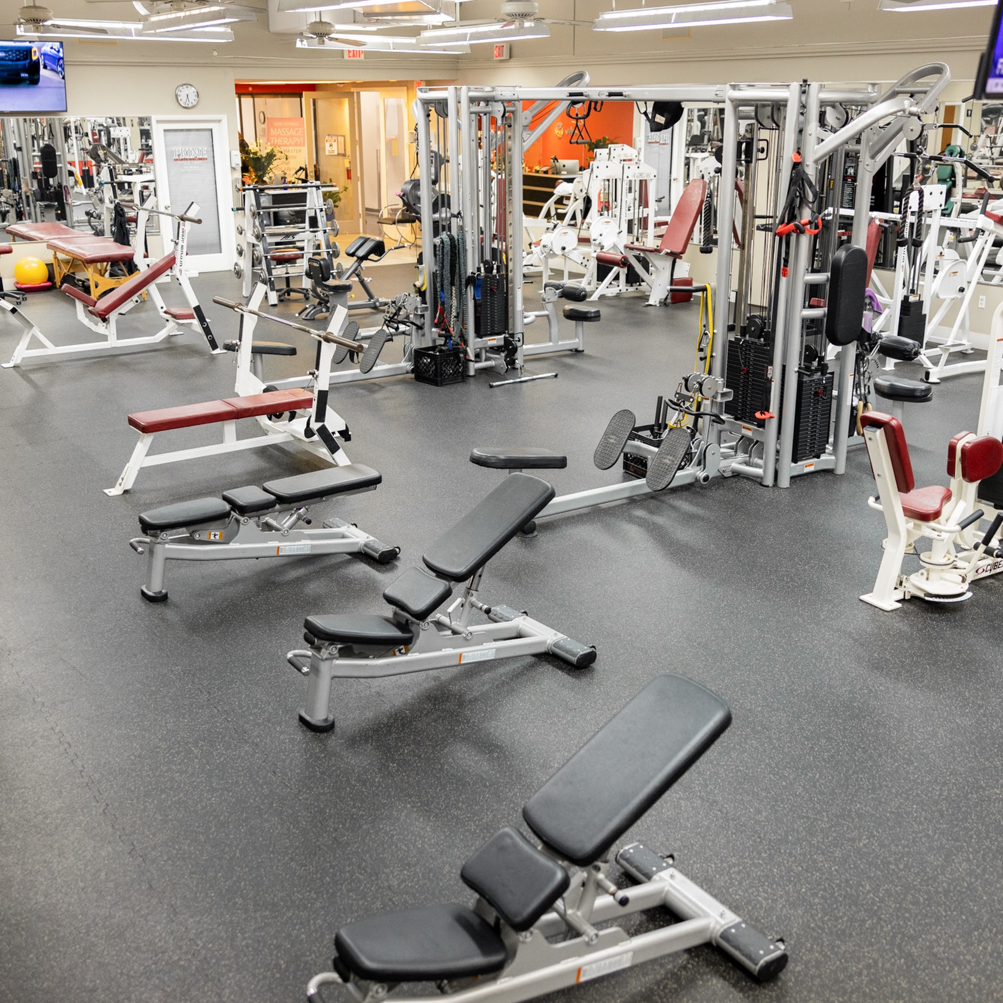 Thus is a beautiful small well equipped gym with a physical therapy practice as well. Knowledgeable trainers and friendly staff. It's got a phenomenal vibe! Couldn't be better. Spotless locker room, newly renovated, with 4 showers and pristine bathroom facilities. Parking Validated in a covered garage. $1 for 3 hours of parking. Parking on the 6th floor. Walk up, or take the elevator to the 7th.😄