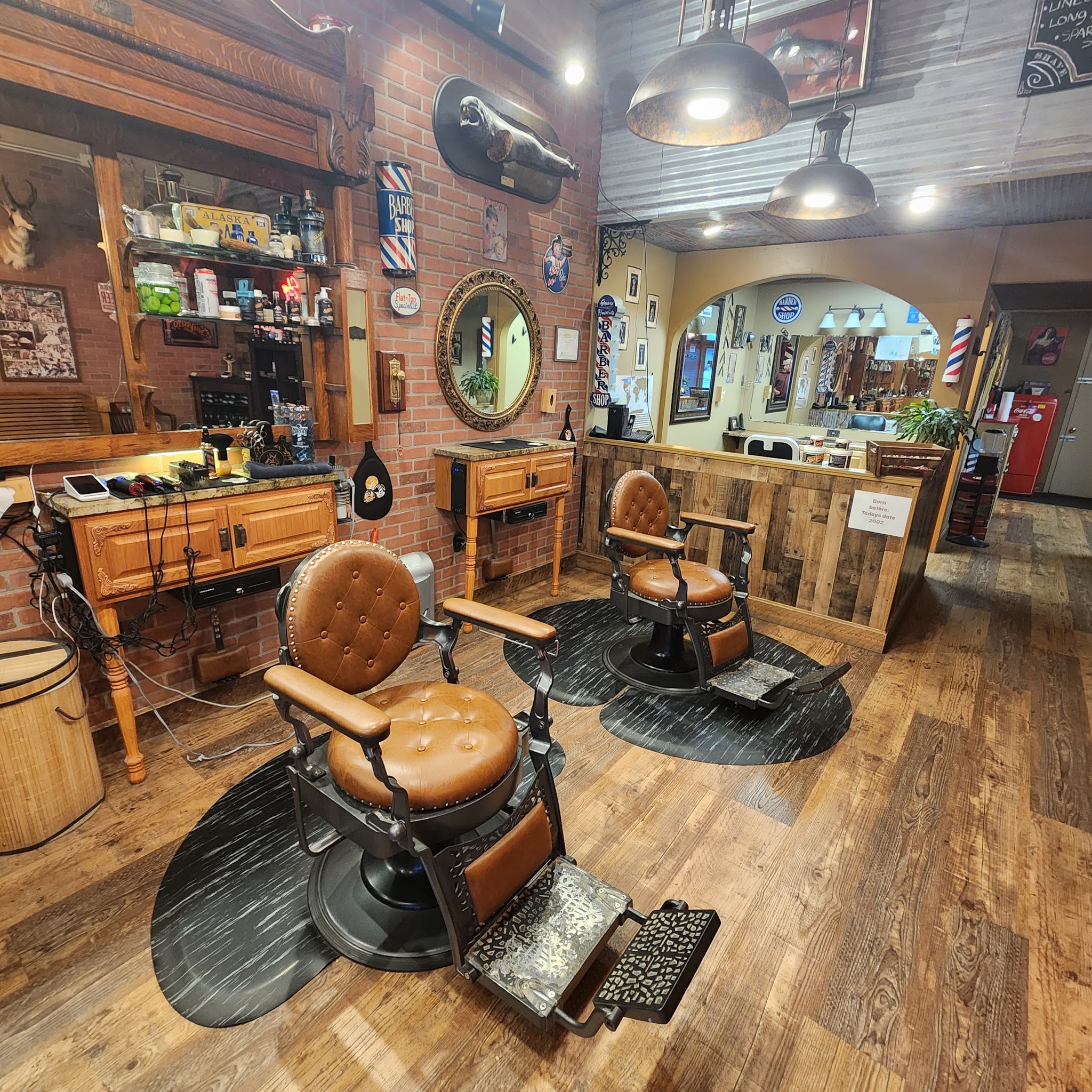 Welcome to our old fashion speakeasy Barbershop, where we welcome walk-ins only. We are located on Northern Lights Blvd. ACROSS the STREET from REI. Enjoy a Complementary adult beverage while you wait, or play our vintage Mrs. Pac-Man video game free of charge to keep you entertained. We offer quality haircuts for men, women and children Including fades, flat tops and business cuts. For those looking for more pampering, ask for our shave specialist to get An old-fashioned (Hard to find these days) hot towel/lather/steamer facial shave. It’s Worth every minute. We Carry a limited supply of men’s hair products, as well as high-quality men’s grooming tools. We are pet friendly (as long as your pet is friendly). Come by and give us a try. 😊