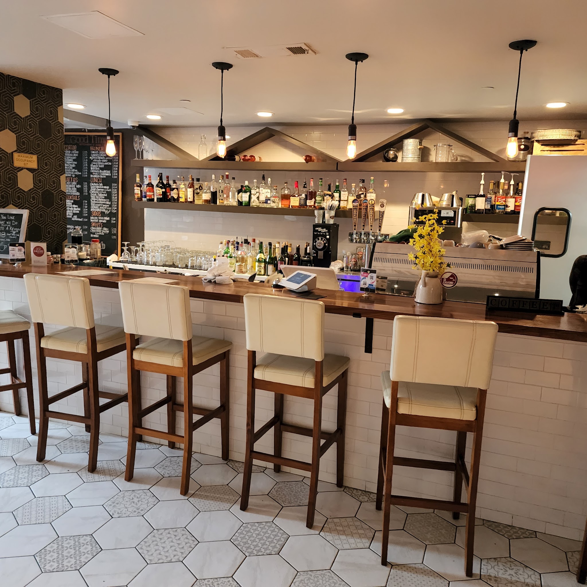 Good Times Kitchen & Bar offers a diverse menu, from classic American fare like burgers and traditional brunch to European-inspired dishes and healthy options. We also boast an extensive drink selection featuring house-made craft cocktails, local beers, and a full espresso bar. Weekend brunch provides a relaxed atmosphere to enjoy a variety of sweet and savory choices.