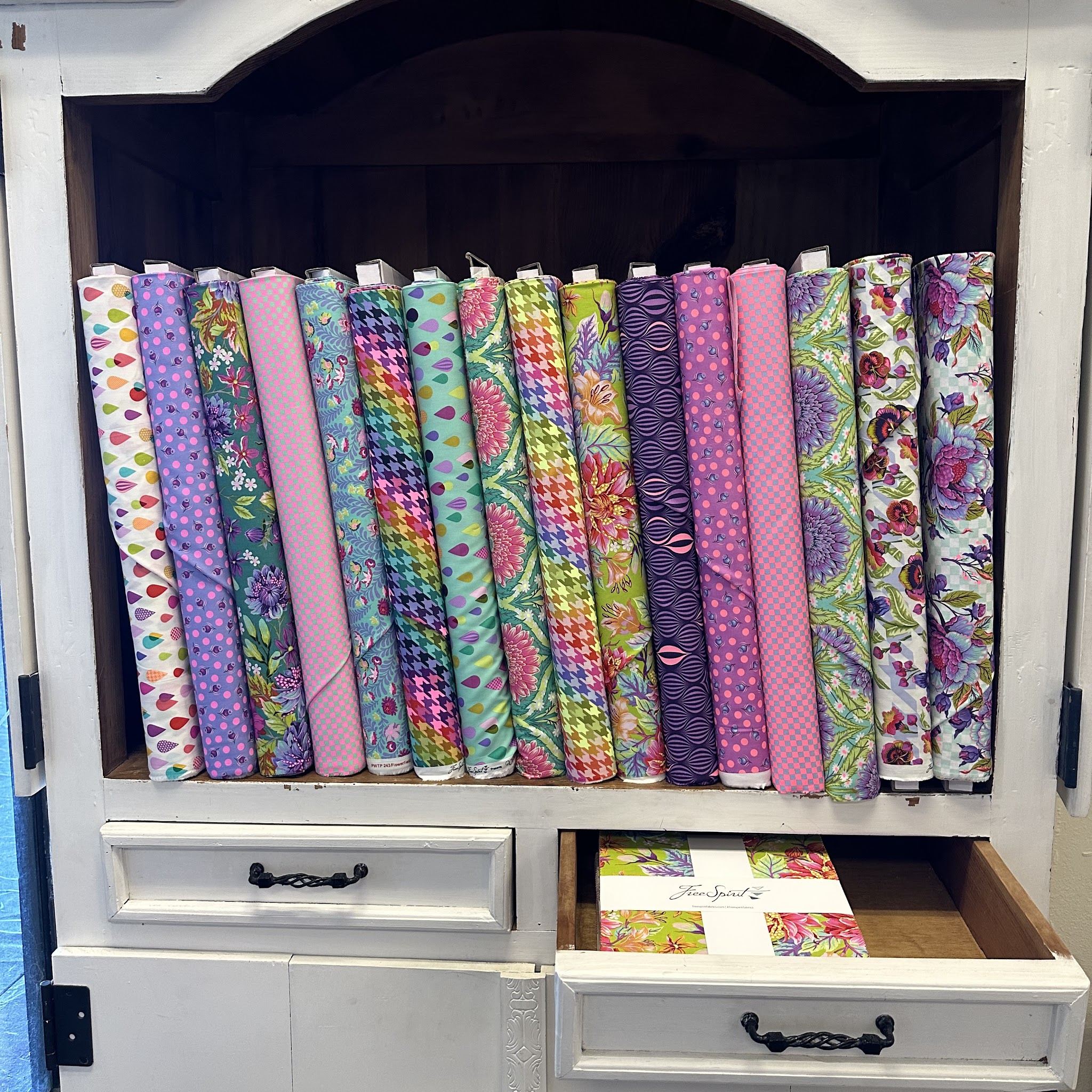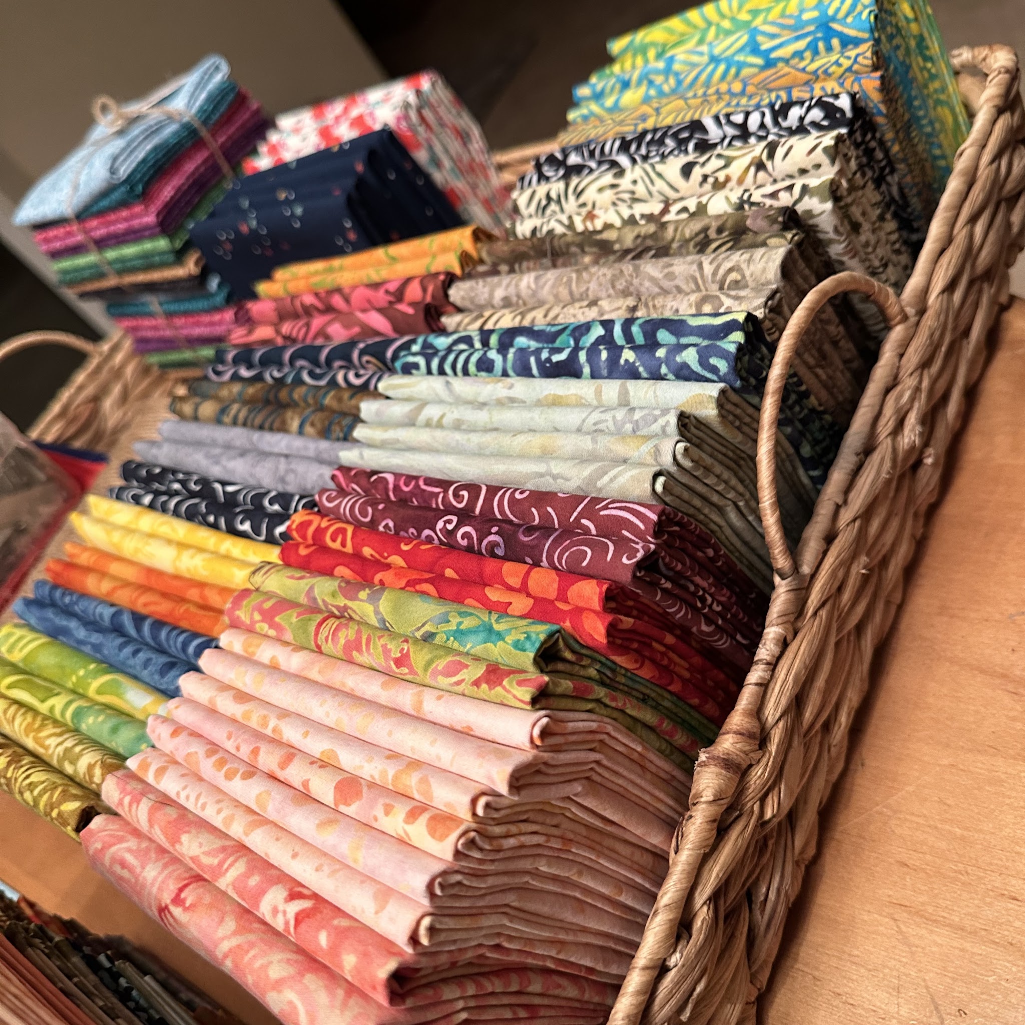 The fabric in this shop puts a smile on your face. The bolts are colorful and vibrant. The owner is welcoming and shared information about other quilt shops in the area. Worth the time