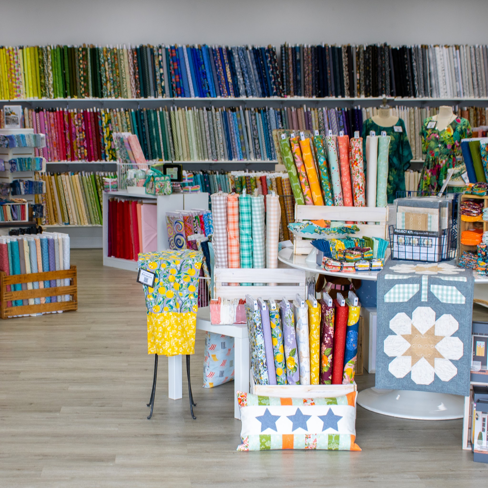 Outstanding selection of fabric, kits, patterns and tools of a sewist's dreams. Large assortment of classes, really enthusiastic and helpful staff. Inspiring creative space.