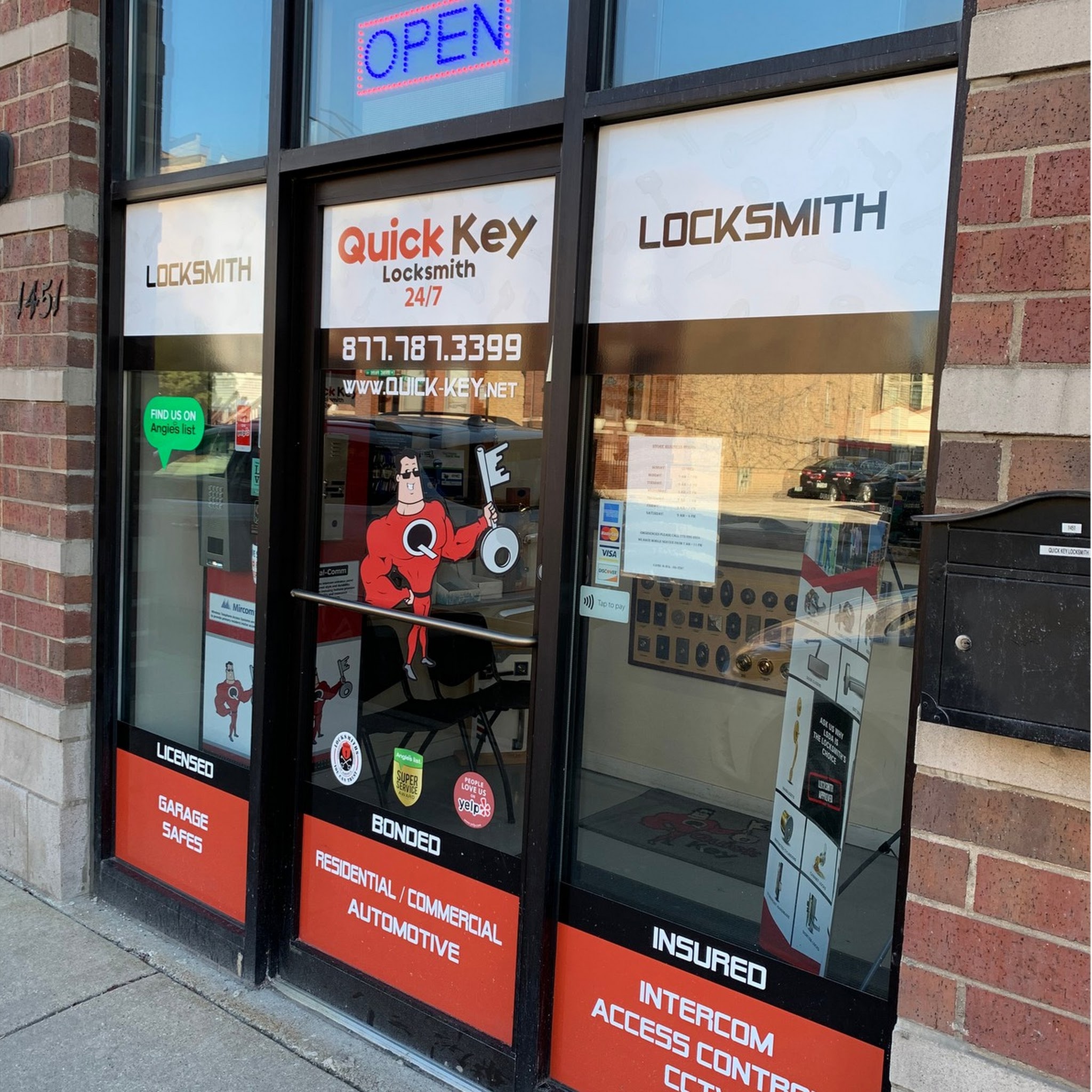 At Quick Key Locksmith we provide an array of security services for all your Residential, Commercial and Industrial needs. Our locksmith experts can help you with emergency door unlocking, unlocking, key cutting and more. Residential services include, lockouts, installation of new locks and deadbolts, high security locks and more. Our wide range of commercial services cover, master keying, dead bolts, safe locks, door closers, exit devices, to name a few. As part of its security solutions quick key locksmith offers CCTV, Access Control and Intercom systems, which are individually tailored to our customer’s needs. All these locksmith services are provided by expert technicians, who can also repair/upgrade your existing system.