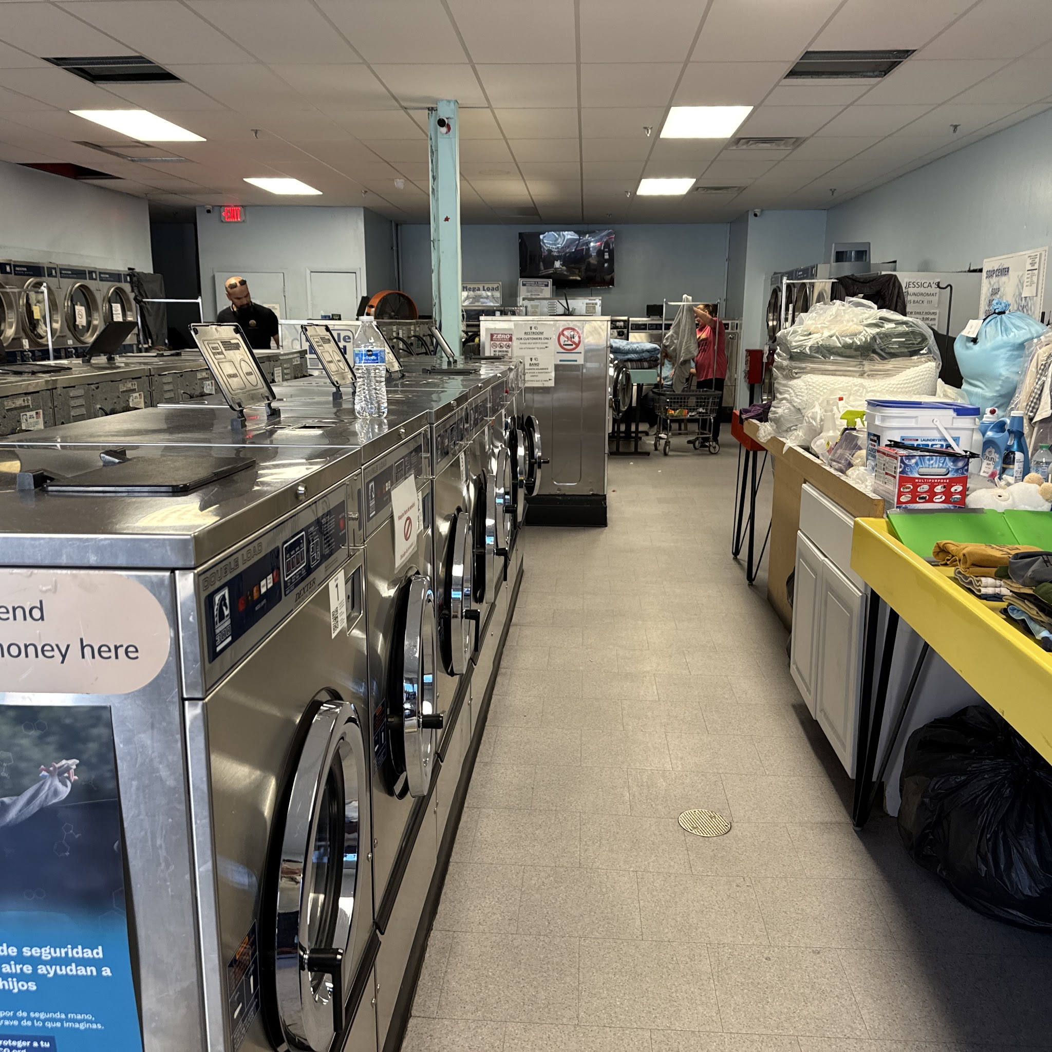 Self service Laundromat. You can pay with laundry boss App,quarters, cash, or card. We offer wash and fold services. Free pick up and delivery around us within 3 miles, we pick up from all hotels near by. We have a soap vending dispenser, a vending machine and an Atm. Bitcoin ATM. We added Alterations: hemming, and patches etc to our service LAST LOAD AT 7pm Envios de dinero por RIA Ultima lavada a las 7pm Ask about free drying on Wednesday