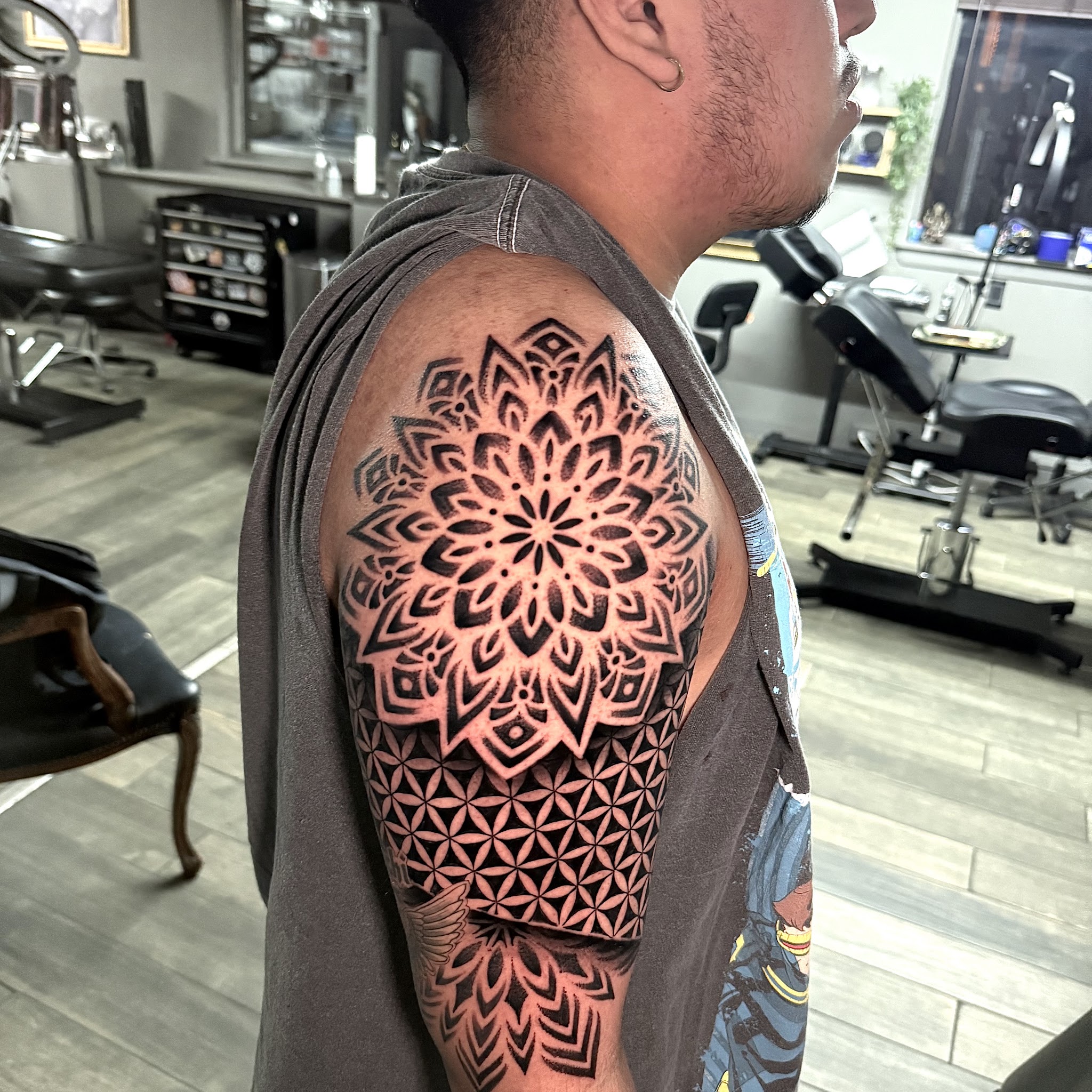 A hidden gem in Newark, staff is friendly. very clean place love the ambience. my tattoo artist was Brian overall amazing artist clean line work shading 10/10 helped me with placem... A hidden gem in Newark, staff is friendly. very clean place love the ambience. my tattoo artist was Brian overall amazing artist clean line work shading 10/10 helped me with placement of my tattoo …his experience shows. Amazing work can’t wait to be back.ServicesColor ink tattoos, Fine line tattoos, Tattoo design, Male tattoos, Tattoos, Tattoo touch-ups, Sleeve tattoos, Photo-realistic tattoos Read More