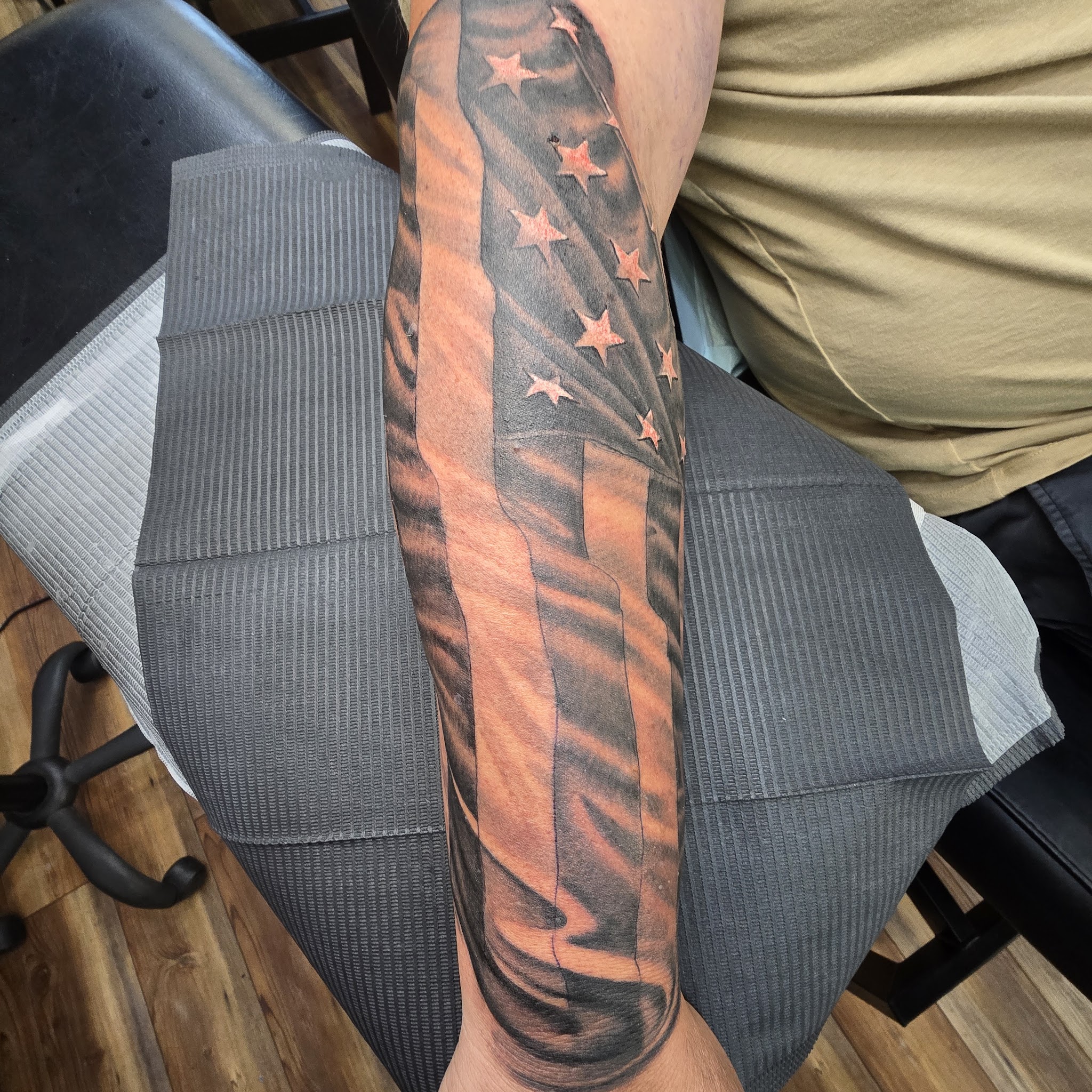Angel did his thing when he drew this masterpiece. Angel was professional and very considerate throughout the entire time. He was patient as I explained what I was looking for and... Angel did his thing when he drew this masterpiece. Angel was professional and very considerate throughout the entire time. He was patient as I explained what I was looking for and set realistic expectations. We also shared good laughs and good music as I got inked up. Thank you Angel for taking the time to do this right! I highly recommend Angel and I will be returning pretty soon for a second masterpiece. Read More