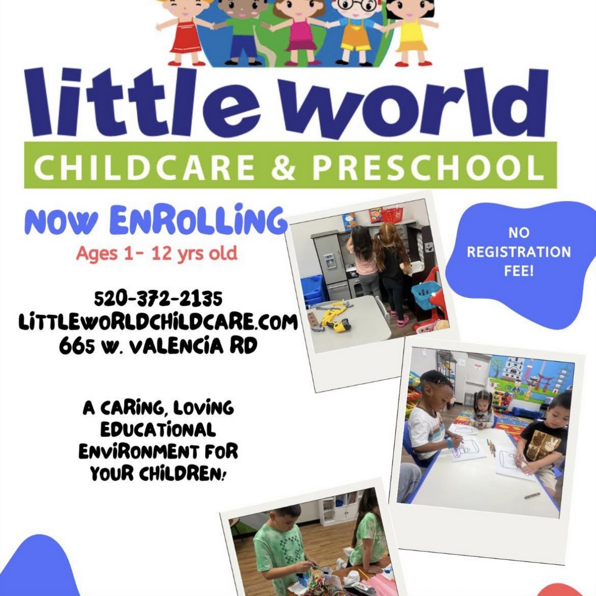 Discover Little World Childcare & Preschool, an exceptional educational experience in Tucson, Arizona, dedicated to nurturing young minds since 2025. With a team of combined professionals of 15+ years experience. Their team of experienced early childhood educators provide a safe, engaging, and stimulating learning environment, offering quality preschool programs. Entrust your child's formative years to Little World, where they'll thrive and grow into happy, confident individuals.