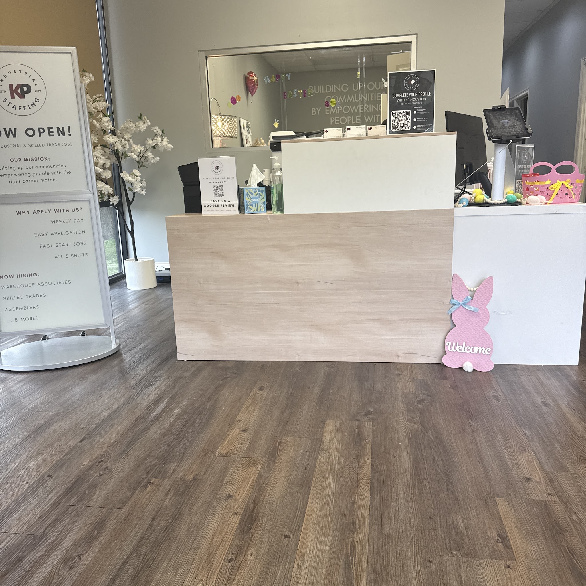 KP Staffing’s Houston, TX location was established in 2022 and provides staffing services for light industrial and professional positions. As a local staffing agency in Houston, we help connect job seekers with temporary, temp-to-hire, and direct hire opportunities while supporting area employers with workforce solutions. Walk-in applications and interviews are available Monday through Friday from 9:00 a.m. to 2:00 p.m.