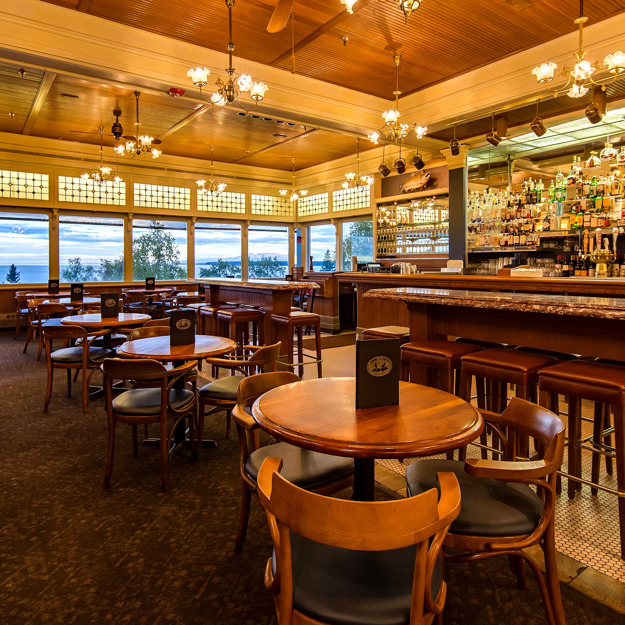 Known by the locals simply as "Simon's" this Anchorage landmark has beautiful panoramic views overlooking Cook Inlet, Mount Susitna and the Alaska Range. This classic American grill has been artfully serving quality USDA prime-aged steak, fresh and innovative seafood since 1978. Enjoy a daily lunch, dinner, weekend brunch, or perhaps a special business or romantic occasion in our warm, inviting and spacious dining room. Join our longtime friends and frequent visitors who have enjoyed many fond memories over the years as our guests.
