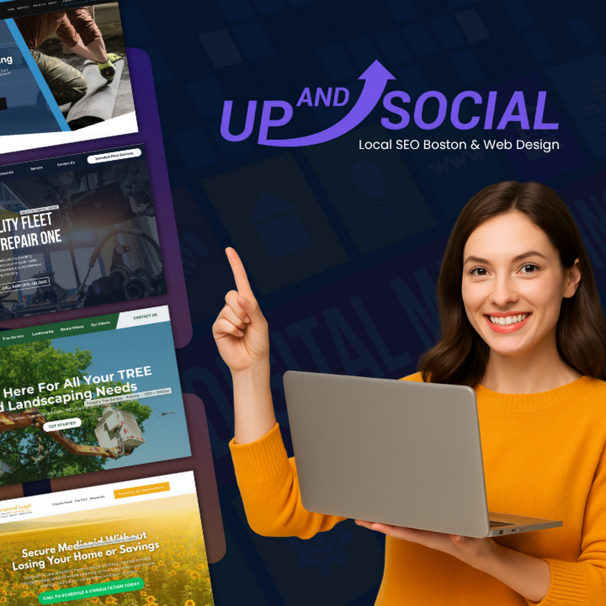 At Up And Social, we help Boston businesses show up first, get more clicks, and turn them into paying customers. From custom website design to powerful local SEO strategies, we don’t just build websites—we build lead machines. Whether you're a startup or a seasoned business, we partner with you to grow your brand and attract the right people. Want more traffic, better leads, and real results? Let’s make it happen. Schedule your free strategy call today and see how far your business can go.