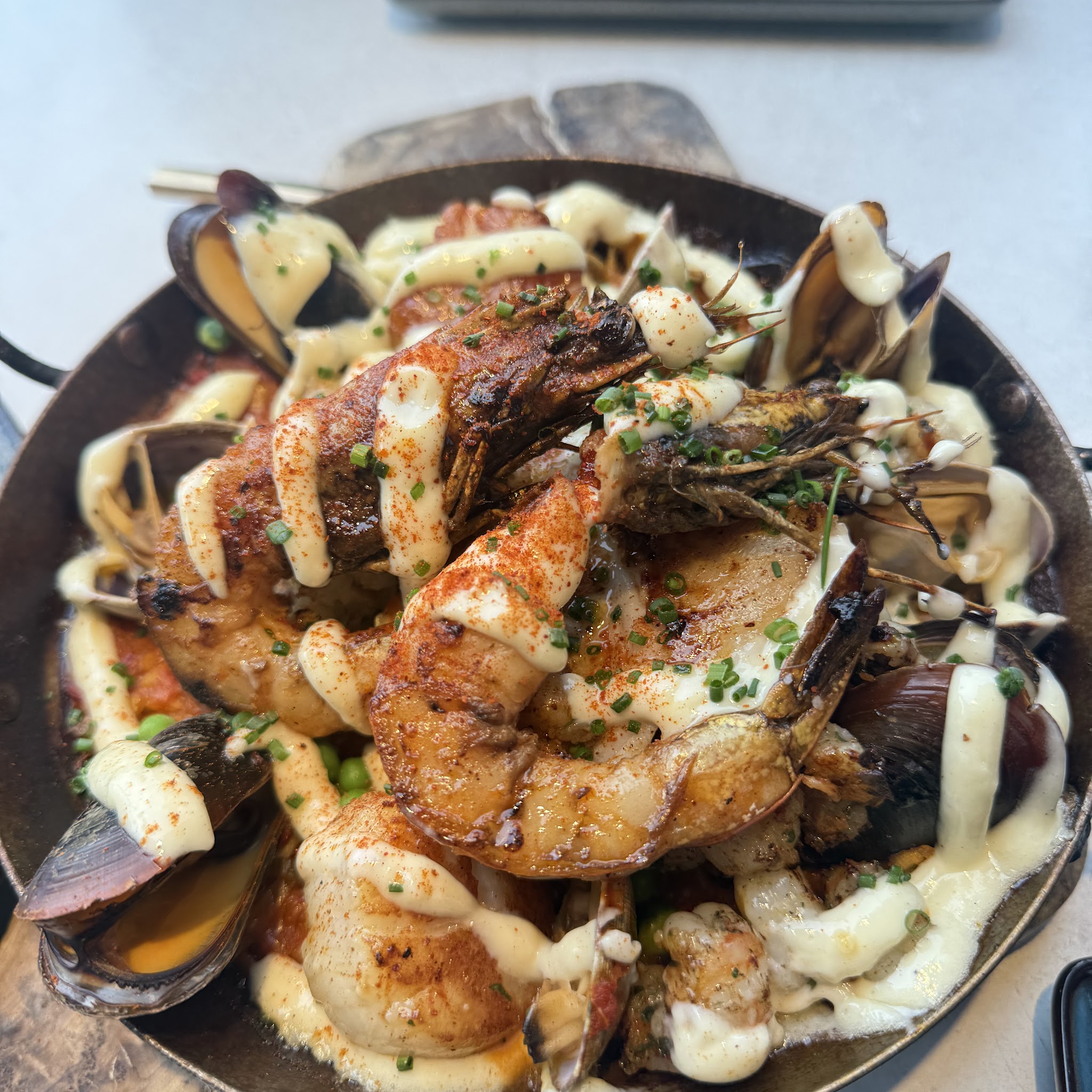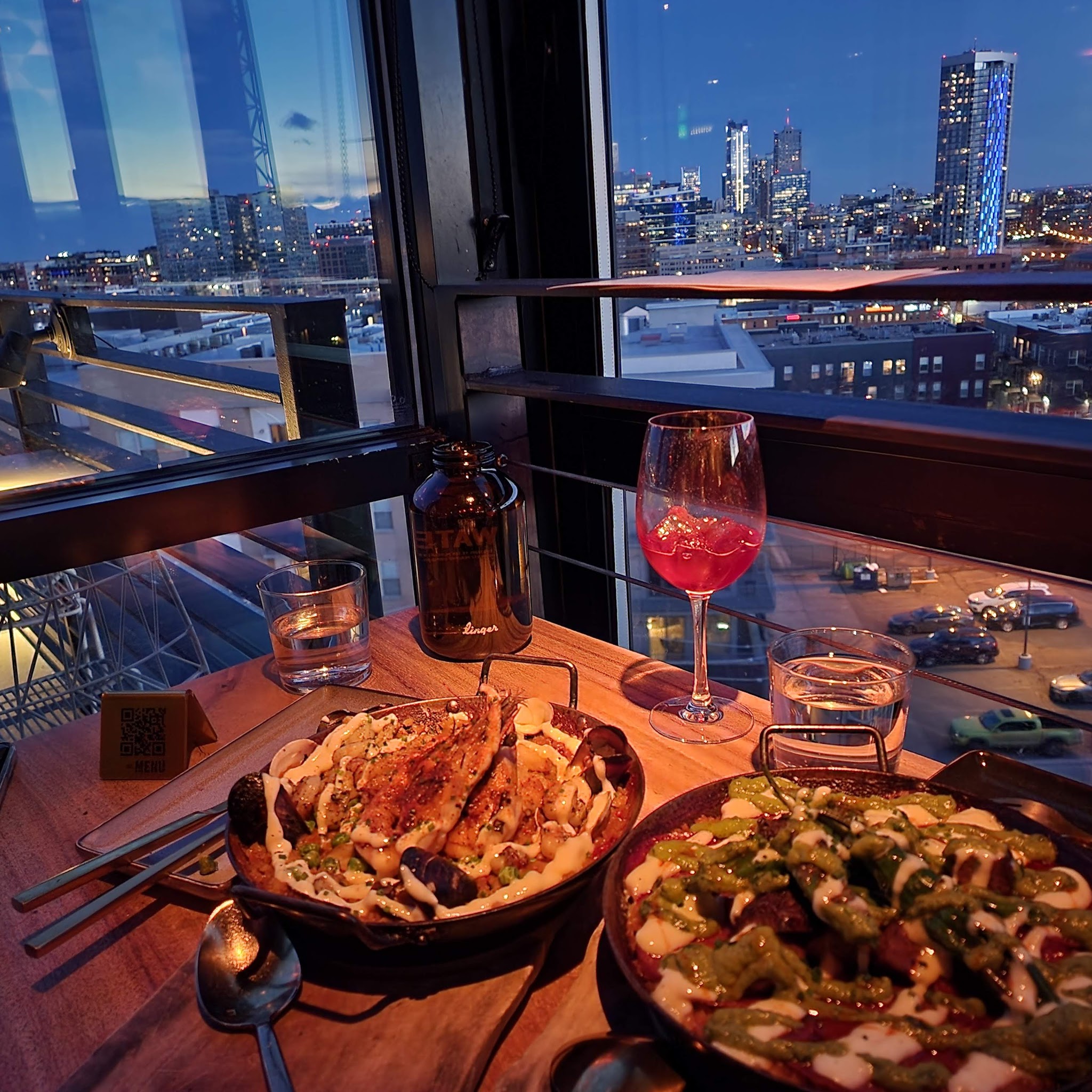 Wow. Just wow. Started with amazing views and a drink before being seated for dinner. Loved the Mediterranean dips (you can get a half order), goat cheese croquettas, harissa eggpl... Wow. Just wow. Started with amazing views and a drink before being seated for dinner. Loved the Mediterranean dips (you can get a half order), goat cheese croquettas, harissa eggplant fries, Tunisian couscous with lamb kebabs and sea bass! We decided on moreTapas options instead of paella. Next time paella!! Rowe was a very knowledgeableWine Director and we had a lovely bottle of Spanish red. Service was stellar, we shall return.Food: 5/5 | Service: 5/5 | Atmosphere: 5/5 Read More