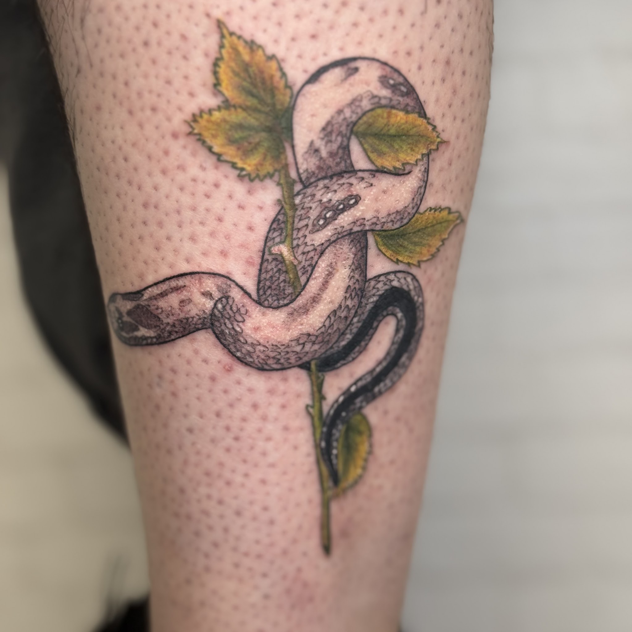 I worked with Rose on this celestial piece. She was awesome! She and I designed this together from start to finish. She was patient and deliberate through that entire process, even... I worked with Rose on this celestial piece. She was awesome! She and I designed this together from start to finish. She was patient and deliberate through that entire process, even when I wanted to move small pieces around! The session was fun and easy and I would absolutely work with her again (how many tattoos is too many to get in one week???)! Read More