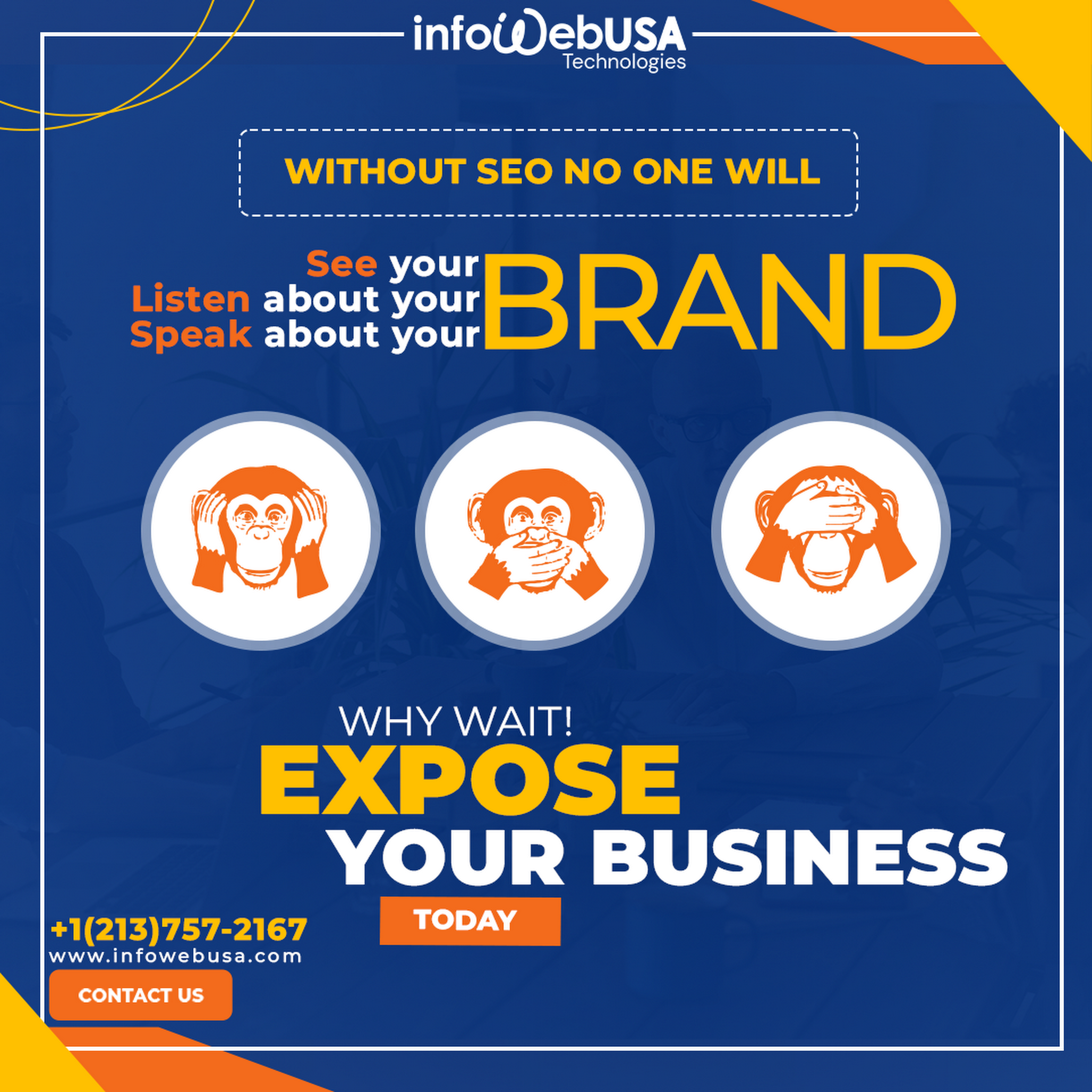 InfoWebUSA Technologies LLC is an IT Solutions Provider that deals with Design, Development [Website Development, web applications, Mobile App Development(Android & IOS), CRM, CMS, E-commerce, Search Solutions, Collaboration Systems], Branding, Advertising & Digital marketing solutions such as SEO, SMO, Google Ads, Facebook Ads etc. Our company’s motto is based on a simple principle of providing our clients with superior Customer satisfaction through our top-notch services and quality. For more details please write to us on connect@infowebusa.com or Call us at +1 (213) 757-2167.